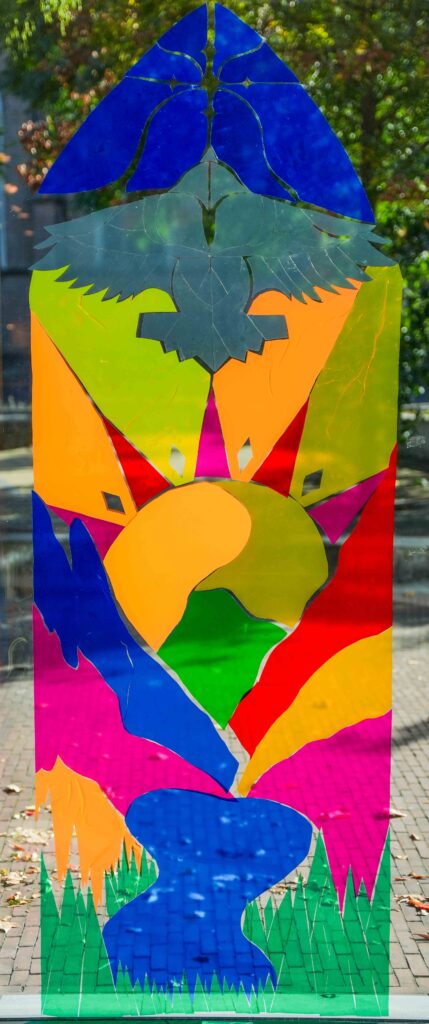 De Haan staat symbool voor Vrede. Het samenwerken zorgt voor verbinding, respectvol omgaan met elkaar geeft kleur aan je leven.”De kleuren dansen “