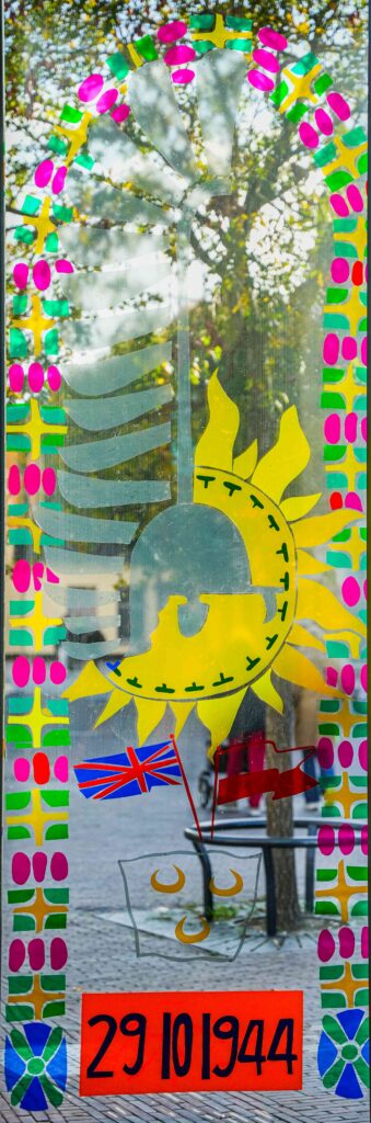 “In het glas-en-loodraam is het embleem van de 1e Poolse pantserdivisie afgebeeld. Dit embleem symboliseert de vrede die deze divisie in oktober 1944 naar de gemeente Oosterhout bracht. Binnen de divisie vochten voornamelijk Poolse militairen, vaak in nauwe samenwerking met hun Engelse bondgenoten. Met dit raam eren en herdenken wij de bevrijding en de vrede die zij aan onze gemeenschap hebben geschonken.”